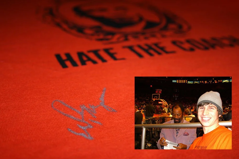 Knicks legend Walt "Clyde" Frazier signed the shirt at one point.