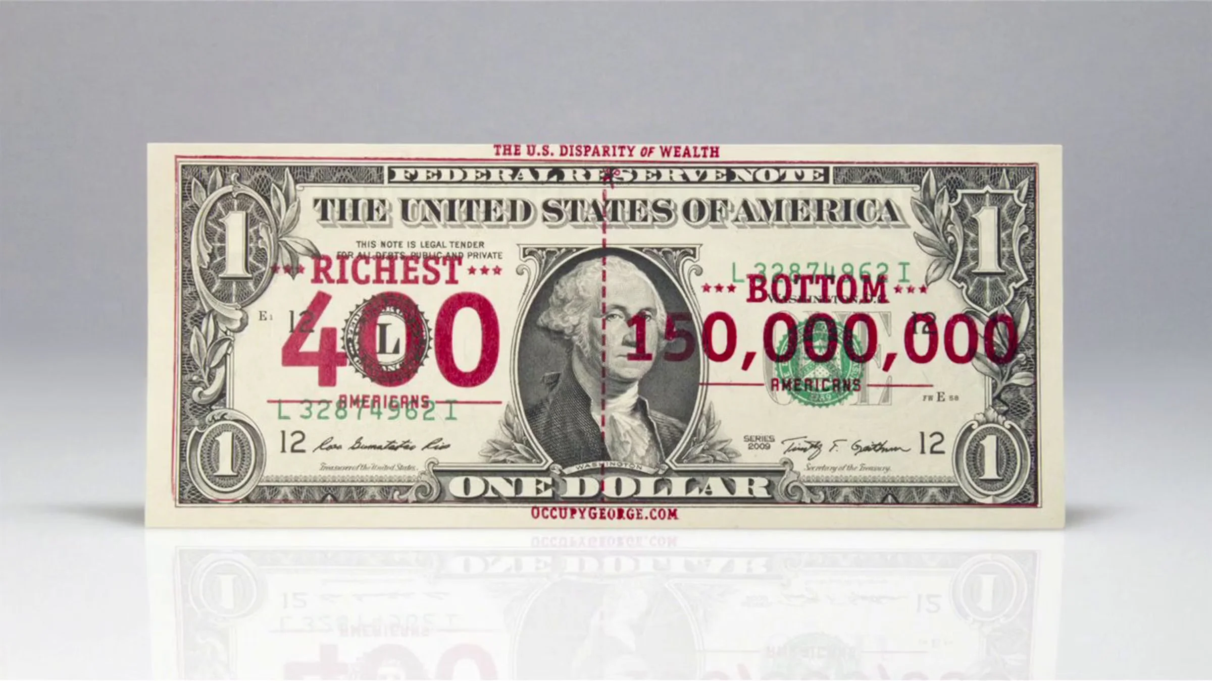 By circulating dollar bills stamped with fact-based infographics, Occupy George informs the public of America's daunting economic disparity one bill at a time.